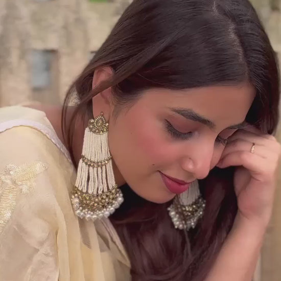 The Mumtaz Earrings feature exquisite craftsmanship highlighted by high-quality pearls and dazzling CZ stones.
